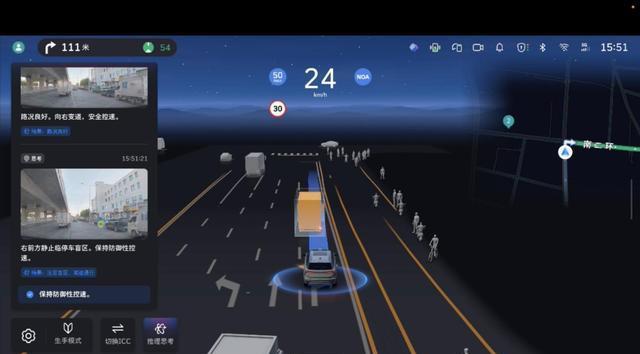 更让人安心的是CP Master系统的“防御性驾驶”功能,基于VLA大模型的空间语义理解能力,CP Master系统可以推理未来数秒可能发生的风险,真正“看得见”潜在隐患。遇到路口被施工围挡封闭,或途经路边的临停大车,车辆会依据周围环境先行降速,判断安全无虞后才会通过,真正将安全防线从“被动响应”前移至更值得信任的“主动避险”, 防患于未然。